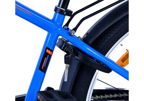 Veiligheid staat voorop! Daarom heeft deze gave fiets een handrem en terugtraprem, 3 versnellingen, reflectoren in de wielen en verlichting op batterij voor en achter. Ook aan het comfort is gedacht. De mooie donkerblauwe Volare fiets heeft een handige achterdrager om moeiteloos al je spullen mee te nemen, een comfortabel zacht zadel, een standaard zodat je fiets altijd netjes blijft staan en een stevig slot. Om zo lang mogelijk van de fiets te kunnen genieten heeft deze een extra lange zadelpen waardoor de fiets nóg langer met het kind meegroeit. Let op, het stuur is niet in hoogte verstelbaar!