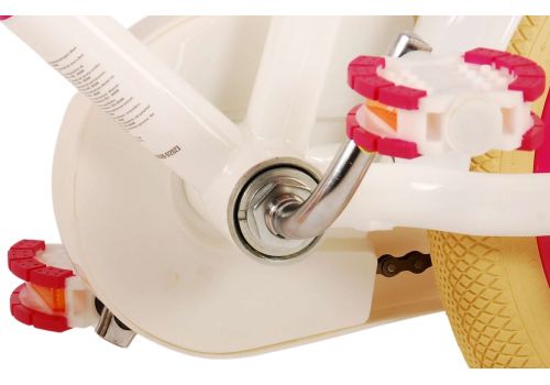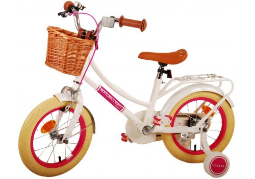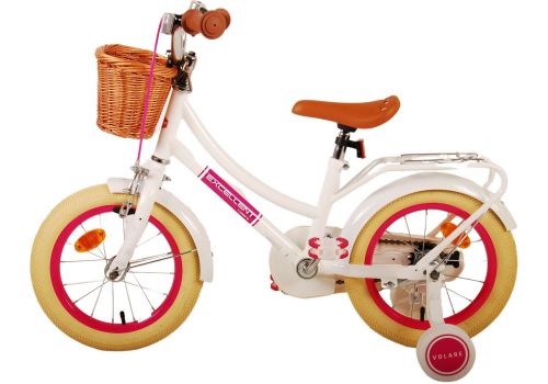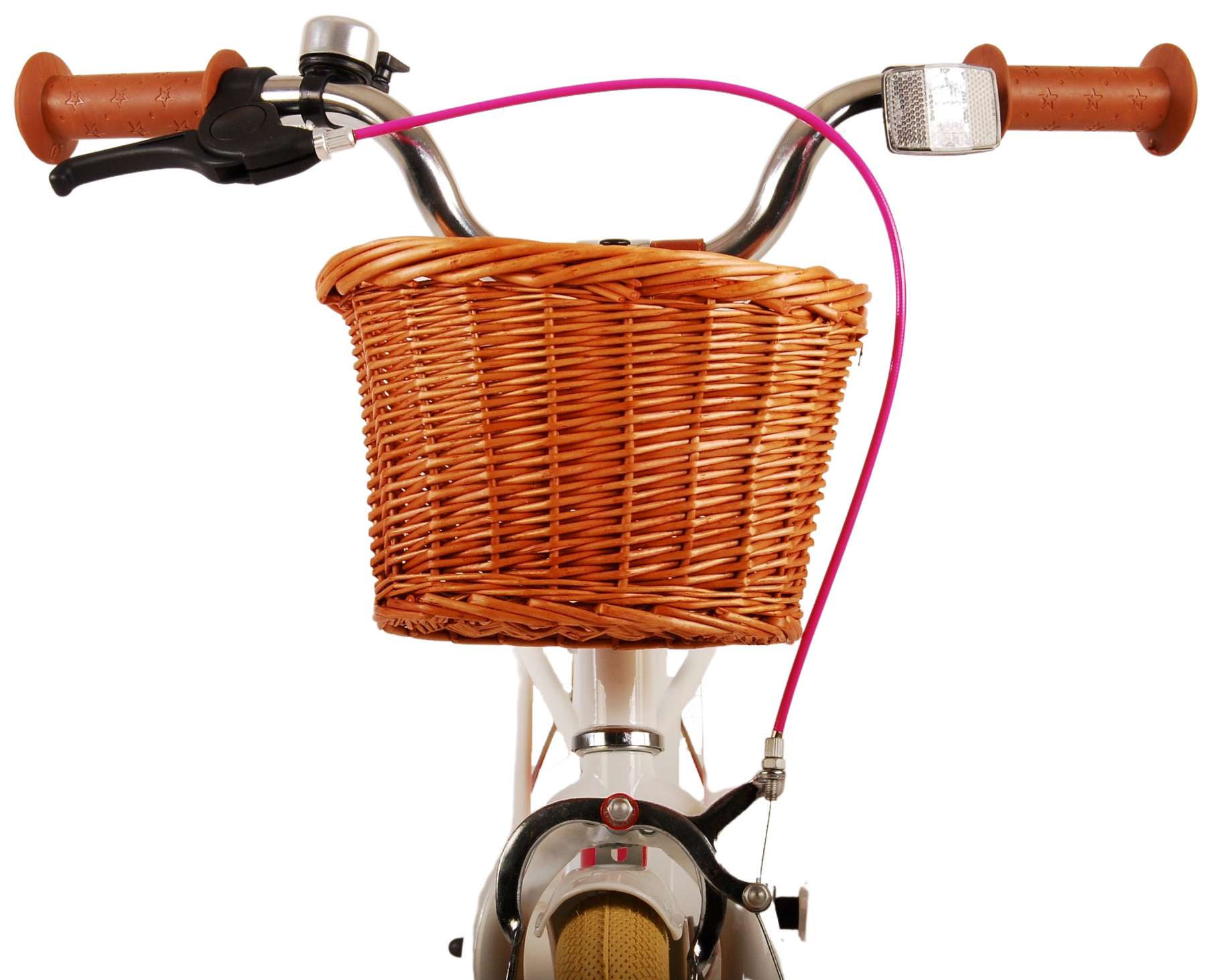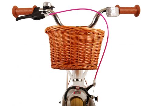Veiligheid staat voorop! Daarom heeft deze gave fiets een handrem en terugtraprem, afneembare zijwieltjes en een gesloten kettingkast. Daarnaast heeft de fiets reflectoren achter en een leuke bel. Ook aan het comfort is gedacht. De mooie witte Volare fiets heeft een handige achterdrager, een luxe zacht zadel en een handig rieten mandje. Om zo lang mogelijk van de fiets te kunnen genieten zijn het zadel en stuur in hoogte verstelbaar. Wordt geleverd inclusief al het montagemateriaal dat nodig is om de fiets in elkaar te zetten!