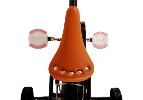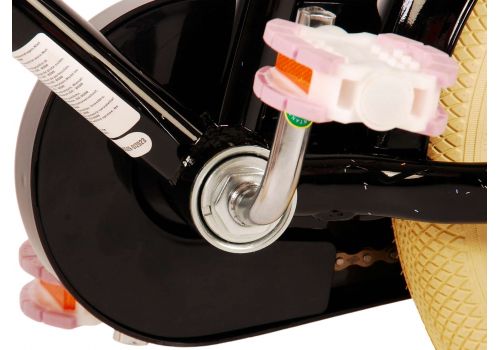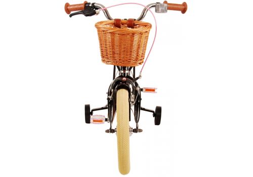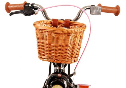 Veiligheid staat voorop! Daarom heeft deze gave fiets een handrem en terugtraprem, afneembare zijwieltjes en een gesloten kettingkast. Daarnaast heeft de fiets reflectoren achter en een leuke bel. Ook aan het comfort is gedacht. De mooie zwarte Volare fiets heeft een handige achterdrager, een luxe zacht zadel en een handig rieten mandje. Om zo lang mogelijk van de fiets te kunnen genieten zijn het zadel en stuur in hoogte verstelbaar. Wordt geleverd inclusief al het montagemateriaal dat nodig is om de fiets in elkaar te zetten!
