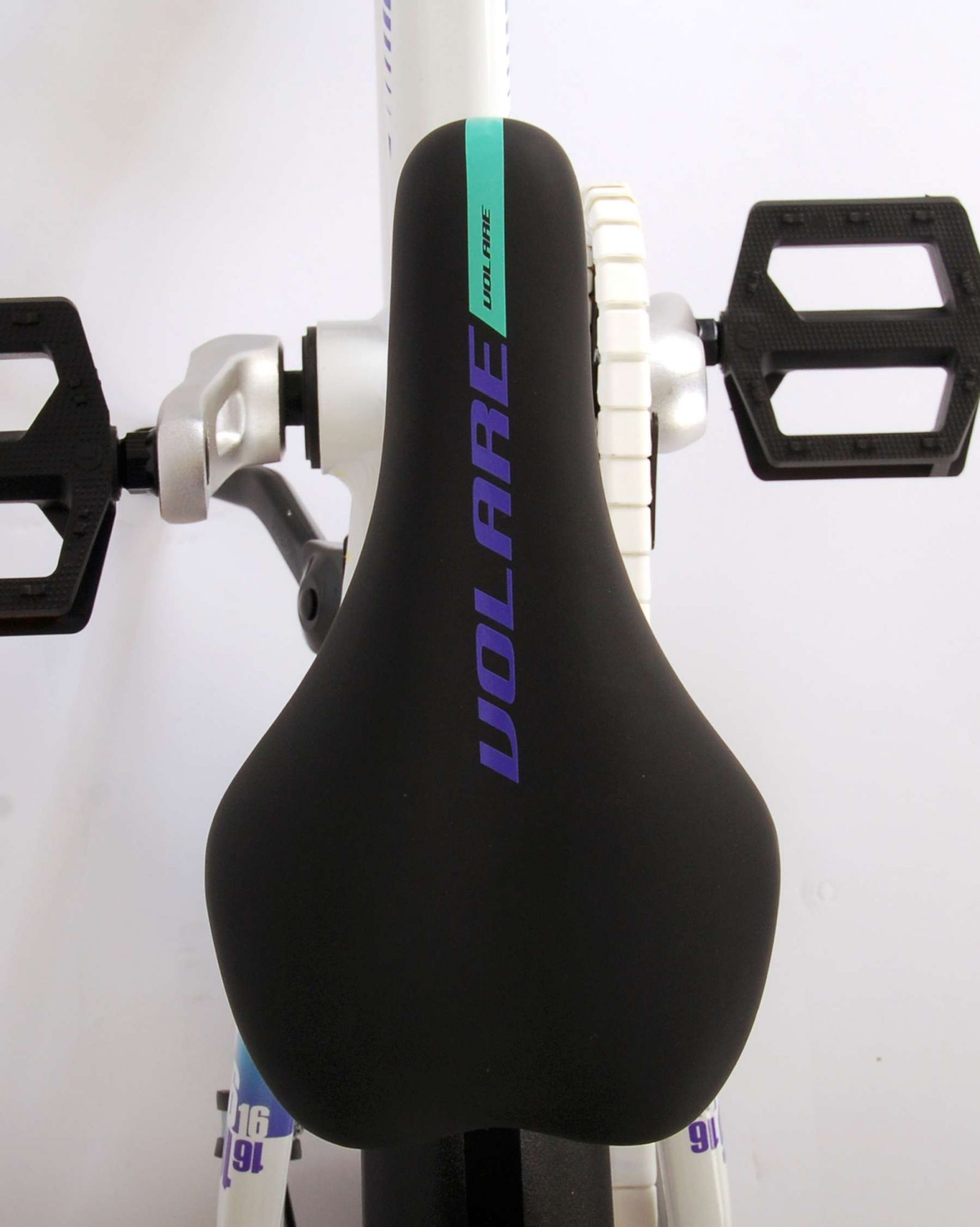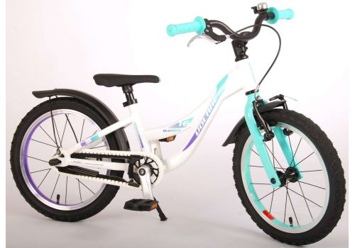 Veiligheid staat voorop! Daarom heeft deze gave fiets een handrem en terugtraprem en een chainlooper. Daarnaast heeft de fiets reflectoren in de trappers en een leuke bel. Ook aan het comfort is gedacht. De mooie witte Volare fiets met mintgroene accenten heeft een extra licht aluminium frame (slechts 5,9 kilo!), een comfortabel zacht zadel, handvaten van kraton, en een stevig standaard zodat je fiets altijd netjes blijft staan. Om zo lang mogelijk van de fiets te kunnen genieten heeft de fiets een extra lange zadelpen waardoor de fiets nóg langer met het kind meegroeit (het stuur is niet in hoogte verstelbaar). Kortom: een topkwaliteit fiets waar uw kind nog jaren van kan genieten!