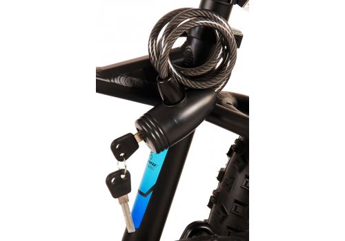 Veiligheid staat voorop! Daarom heeft deze gave fiets geen terugtraprem maar twee handremmen. Daarnaast heeft de fiets verlichting voor en achter, een stevig slot, en een bel. De gekantelde stuurpen zorgt voor een beter zicht op de weg, maar is daardoor niet in hoogte verstelbaar. Ook aan het comfort is gedacht. De mooie zwarte Volare fiets met blauwe accenten heeft een extra licht aluminium frame, een standaard zodat je fiets netjes blijft staan, extra brede banden, 7 versnellingen, en zachte handvaten van kraton. Om zo lang mogelijk van de fiets te kunnen genieten is het zadel in hoogte verstelbaar.
