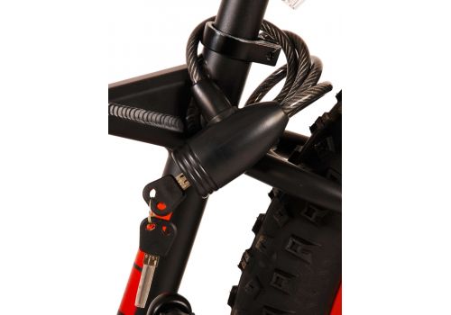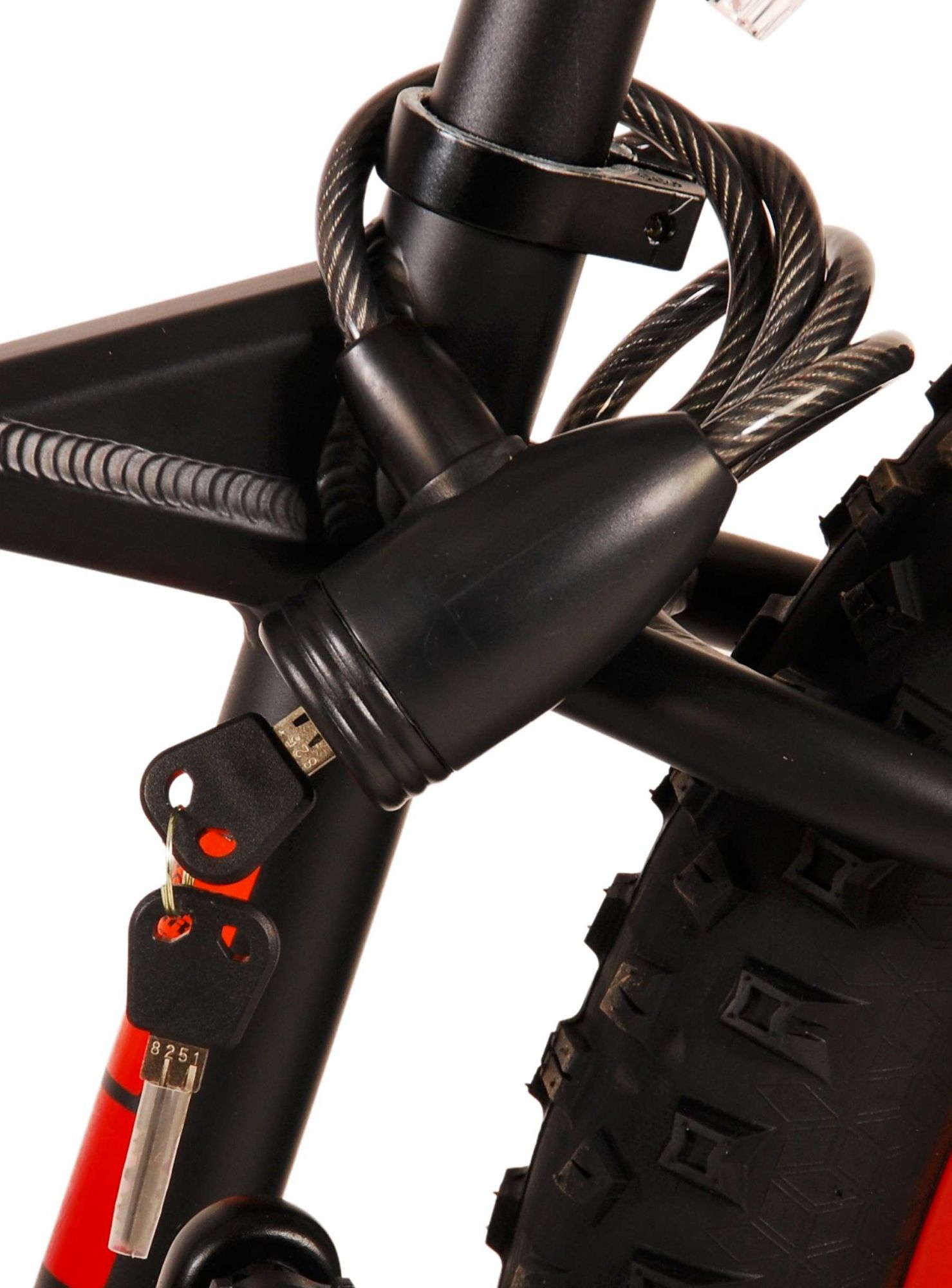 Veiligheid staat voorop! Daarom heeft deze gave fiets geen terugtraprem maar twee handremmen. Daarnaast heeft de fiets verlichting voor en achter, een stevig slot, en een bel. De gekantelde stuurpen zorgt voor een beter zicht op de weg, maar is daardoor niet in hoogte verstelbaar. Ook aan het comfort is gedacht. De mooie zwarte Volare fiets met rood en oranje accenten in de velgen heeft een extra licht aluminium frame, een standaard zodat je fiets netjes blijft staan, extra brede banden, 7 versnellingen, en zachte handvaten van kraton. Om zo lang mogelijk van de fiets te kunnen genieten is het zadel in hoogte verstelbaar.