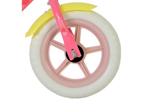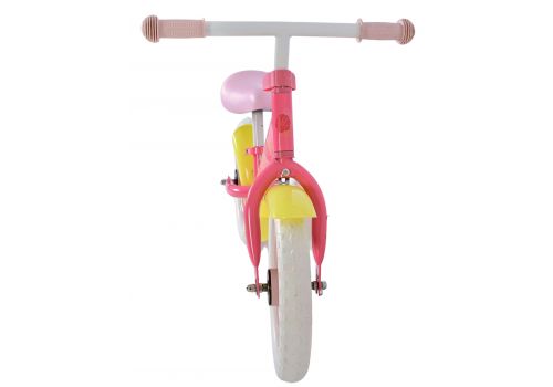 Deze lieve roze loopfiets is perfect voor kinderen van 1 tot 3 jaar die hun eerste stapjes in de fietswereld zetten. Met vrolijke gele spatborden en pastelroze velgen is deze fiets een echte eyecatcher voor elk avontuur in de straat of tuin.