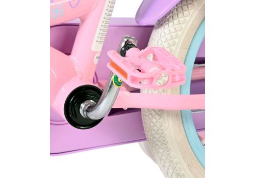 De afneembare zijwieltjes helpen kinderen stap voor stap leren fietsen, en zodra ze klaar zijn om zelfstandig te rijden, kunnen de zijwielen eenvoudig worden verwijderd. Achterop de fiets zit een leuk poppenzitje, zodat de favoriete pop altijd mee kan op avontuur. Het zadel en stuur zijn in hoogte verstelbaar, zodat de fiets met je kind meegroeit. Daarnaast is de fiets voorzien van een bel, zodat iedereen weet dat er een trotse kleine fietser aankomt.