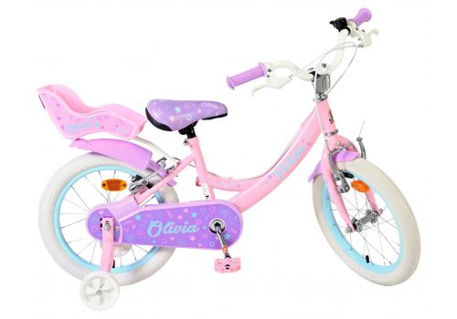 De Volare Olivia 16 inch kinderfiets is een schattige en stijlvolle fiets voor jonge meiden die vol trots willen fietsen. Met haar zachte roze kleur, paarse handvaten, zadel en spatborden is deze fiets een echte blikvanger.