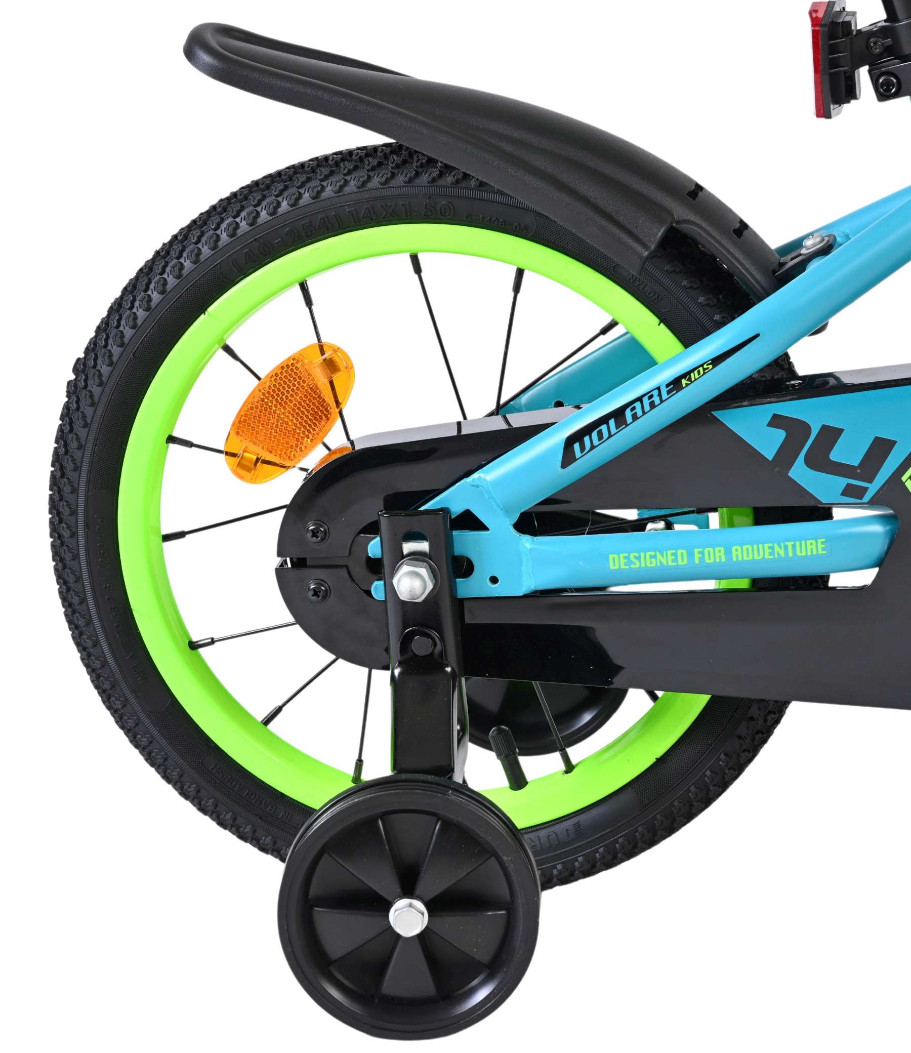 Veiligheid staat voorop! Daarom heeft deze gave fiets een handrem en terugtraprem, een gesloten kettingkast en afneembare zijwieltjes. Daarnaast heeft de fiets een leuke bel. Ook aan het comfort is gedacht. De mooie groene Volare fiets met zwarte accenten heeft een luxe zacht zadel, een strak frame dat wel tegen een stootje kan, en extra lange spatborden om al het vuil tegen te houden. Om zo lang mogelijk van de fiets te kunnen genieten heeft de fiets een extra lange zadelpen waardoor de fiets nóg langer meegroeit. Wordt geleverd inclusief al het montagemateriaal dat nodig is om de fiets in elkaar te zetten!