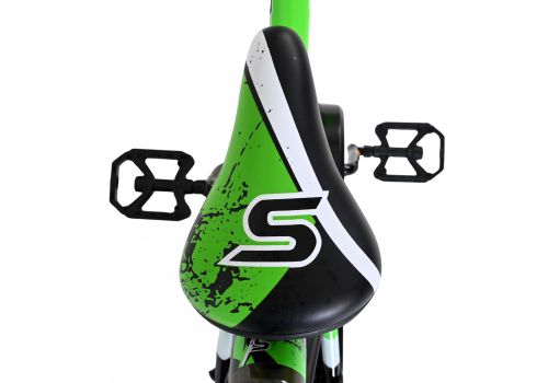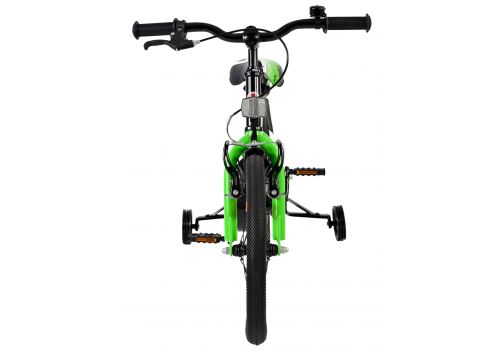 Veiligheid staat voorop! Het sterke stalen frame heeft met de stoere groen/zwarte kleurstelling een zeer sportieve uitstraling. Met de bidon in de praktische bidonhouder heeft uw kind altijd iets te drinken bij zich. De spatborden houden al het opspattend vuil tegen. Om vaart te minderen heeft de fiets zowel een hand- als terugtraprem. Ter bescherming van de kleine vingertjes is de kettingkast gesloten. De fiets heeft zijwielen en een stevige standaard.