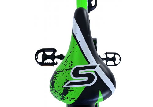 Veiligheid staat voorop! Daarom heeft deze gave fiets GEEN terugtraprem en 2 handremmen. Daarnaast heeft de fiets een leuke bel en reflectoren in de wielen. Ook aan het comfort is gedacht. De mooie zwarte Volare fiets met groene accenten heeft een standaard zodat hij netjes blijft staan. Om zo lang mogelijk van de fiets te kunnen genieten heeft deze een extra lange zadelpen waardoor de fiets nóg langer met het kind meegroeit en ook het stuur is in hoogte verstelbaar.