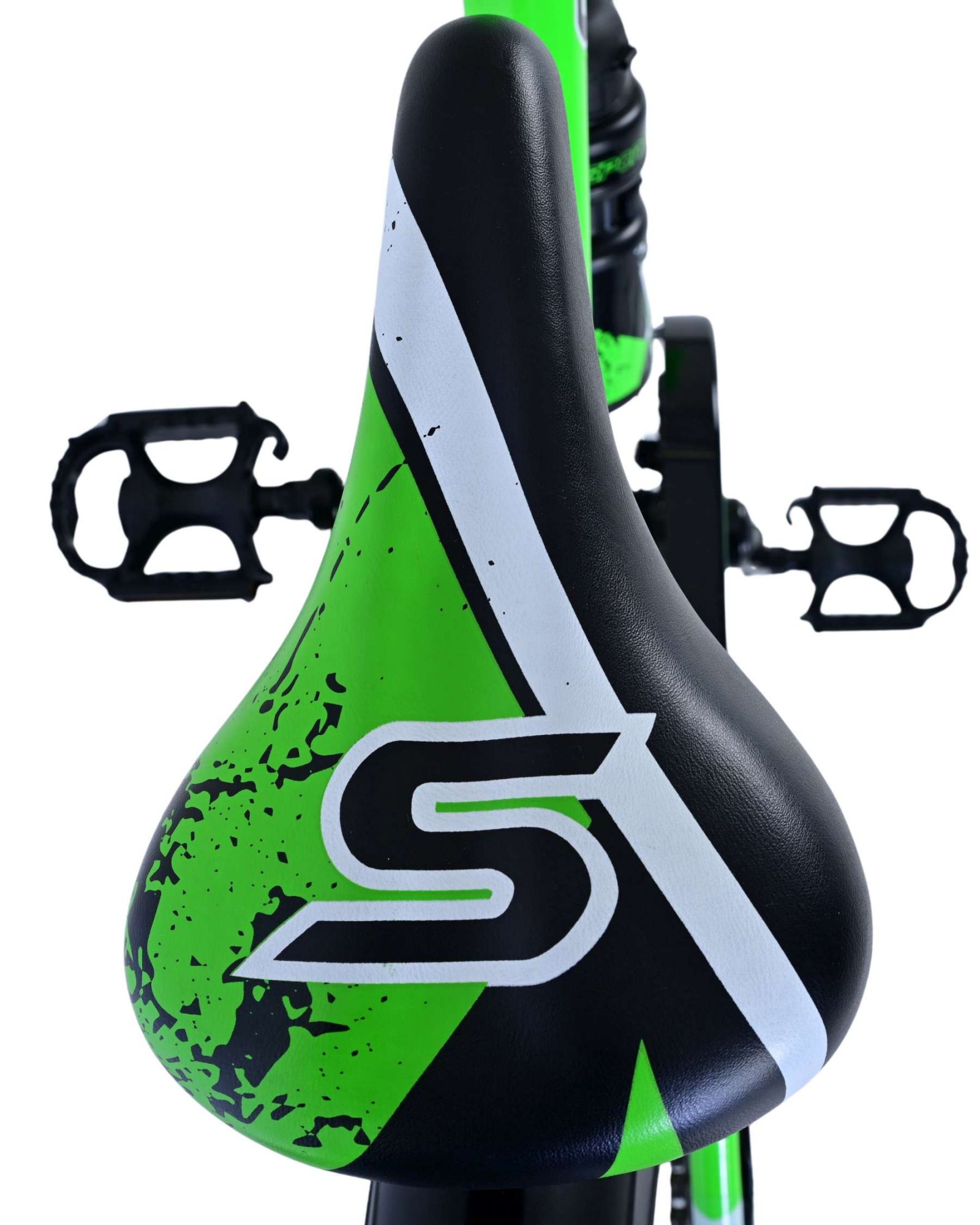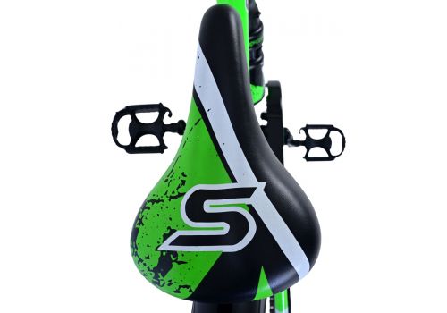 Veiligheid staat voorop! Daarom heeft deze gave fiets GEEN terugtraprem maar twee handremmen. Daarnaast heeft de fiets een leuke bel, reflectoren aan de voor- en achterkant en in de wielen. Ook aan het comfort is gedacht. De mooie zwarte Volare fiets met groene accenten heeft een standaard zodat hij netjes blijft staan. Om zo lang mogelijk van de fiets te kunnen genieten heeft deze een extra lange zadelpen waardoor de fiets nóg langer met het kind meegroeit en ook het stuur is in hoogte verstelbaar.