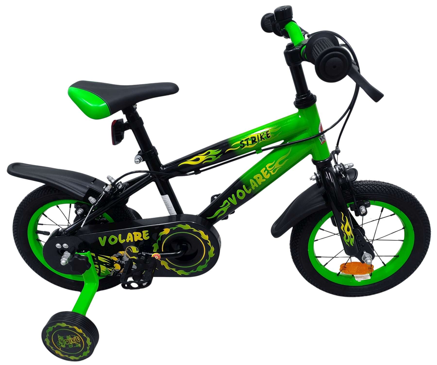 De Volare Strike 12 inch kinderfiets is een stoere fiets voor jonge racers die klaar zijn voor hun eerste avonturen op twee wielen. Met zijn sportieve zwart-groen design en robuuste uitstraling is deze fiets een echte blikvanger.