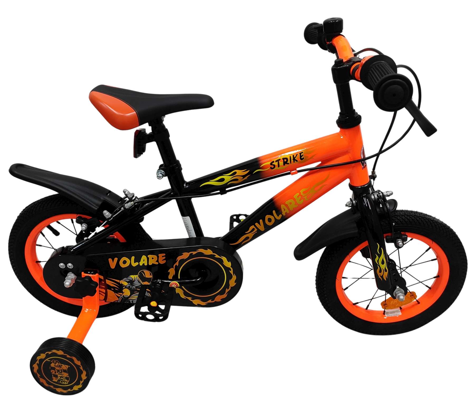 De Volare Strike 12 inch kinderfiets is een stoere fiets voor jonge racers die klaar zijn voor hun eerste avonturen op twee wielen. Met zijn sportieve zwart-oranje design en robuuste uitstraling is deze fiets een echte blikvanger.