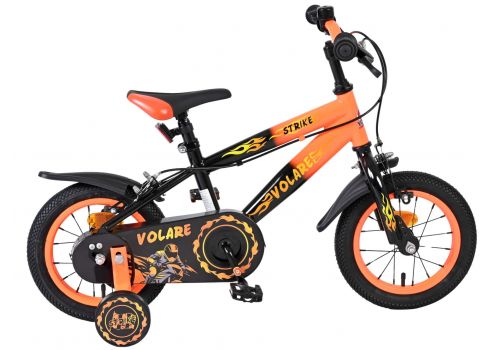 De Volare Strike 12 inch kinderfiets is een stoere fiets voor jonge racers die klaar zijn voor hun eerste avonturen op twee wielen. Met zijn sportieve zwart-oranje design en robuuste uitstraling is deze fiets een echte blikvanger.