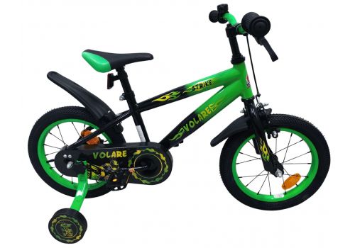 De Volare Strike 14 inch kinderfiets is een stoere fiets voor jonge racers die klaar zijn voor hun eerste grote avonturen op twee wielen. Met zijn sportieve zwart-groen design en robuuste uitstraling is deze fiets een echte blikvanger.