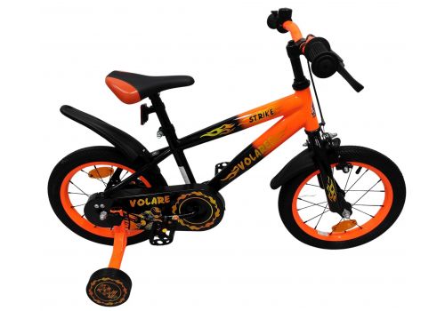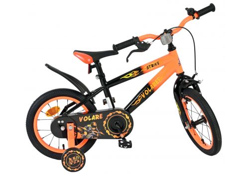 De Volare Strike 14 inch kinderfiets is een stoere fiets voor jonge racers die klaar zijn voor hun eerste grote avonturen op twee wielen. Met zijn sportieve zwart-oranje design en robuuste uitstraling is deze fiets een echte blikvanger.