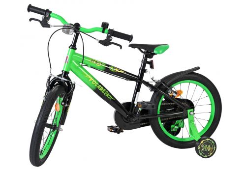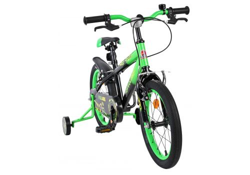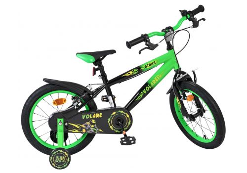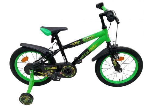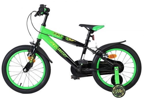 De Volare Strike 16 inch kinderfiets is de ideale fiets voor jonge avonturiers die graag in stijl op pad gaan. Met zijn stoere zwart-groene design en sportieve uitstraling is deze fiets een echte blikvanger voor elke kleine fietser.