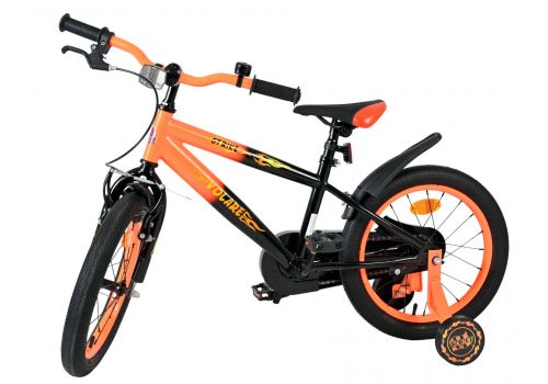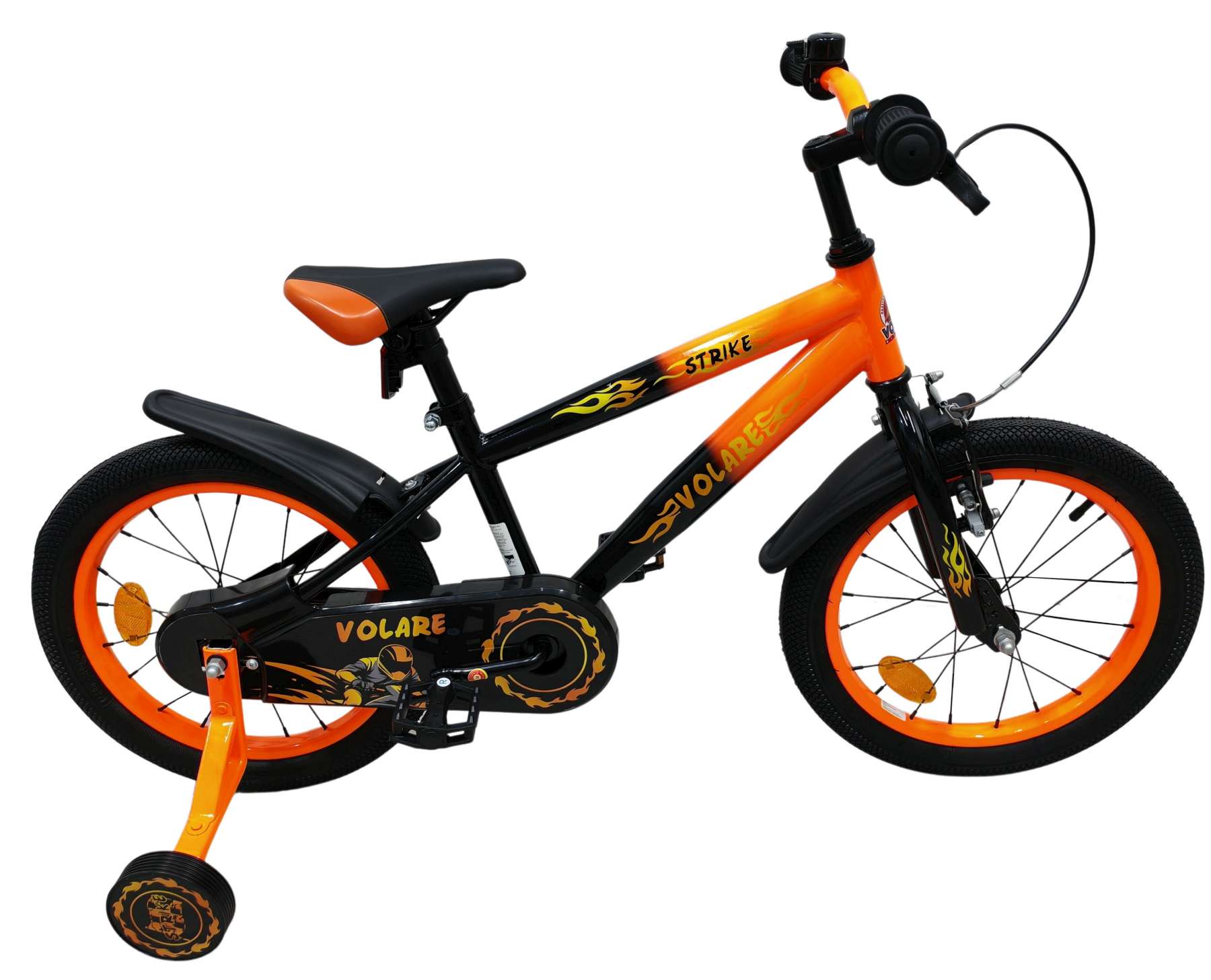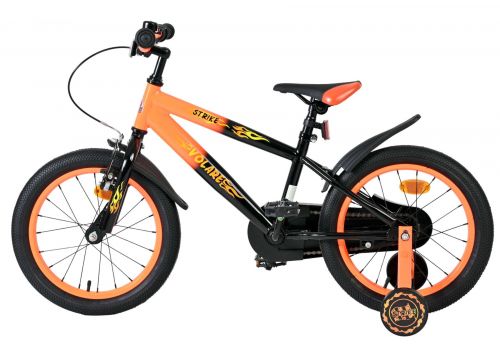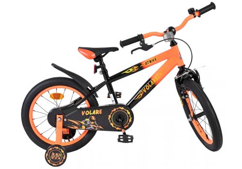 De Volare Strike 16 inch kinderfiets is de ideale fiets voor jonge avonturiers die graag in stijl op pad gaan. Met zijn stoere zwart-oranje design en sportieve uitstraling is deze fiets een echte blikvanger voor elke kleine fietser.