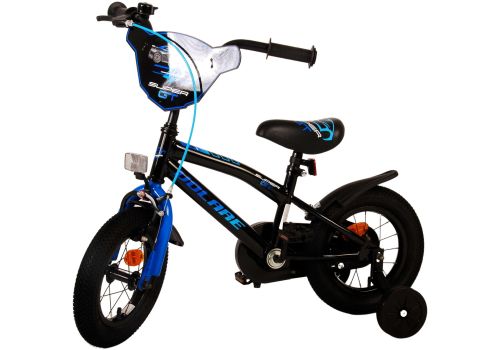 Veiligheid staat voorop! Daarom heeft deze gave fiets een handrem en terugtraprem, een gesloten kettingkast en afneembare zijwieltjes. Daarnaast heeft de fiets reflectoren in de wielen, voor- en achterop de fiets en een leuke bel. Ook aan het comfort is gedacht. De mooie zwarte Volare fiets met blauwe accenten heeft een zacht zadel, een tijdloos design, en een uniek frame dat wel tegen een stootje kan. Om zo lang mogelijk van de fiets te kunnen genieten zijn het zadel en stuur in hoogte verstelbaar. Wordt geleverd inclusief al het montagemateriaal dat nodig is om de fiets in elkaar te zetten!