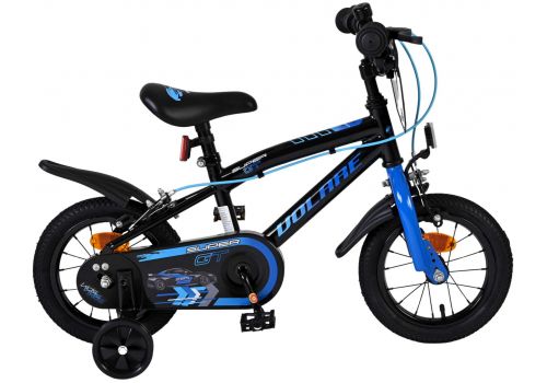 Veiligheid staat voorop! Daarom heeft deze gave fiets geen terugtraprem maar twee handremmen, een gesloten kettingkast en afneembare zijwieltjes. Daarnaast heeft de fiets reflectoren in de wielen, voor- en achterop de fiets en een leuke bel. Ook aan het comfort is gedacht. De mooie zwarte Volare fiets met blauwe accenten heeft een zacht zadel, een tijdloos design, en een uniek frame dat wel tegen een stootje kan. Om zo lang mogelijk van de fiets te kunnen genieten zijn het zadel en stuur in hoogte verstelbaar. Wordt geleverd inclusief al het montagemateriaal dat nodig is om de fiets in elkaar te zetten!