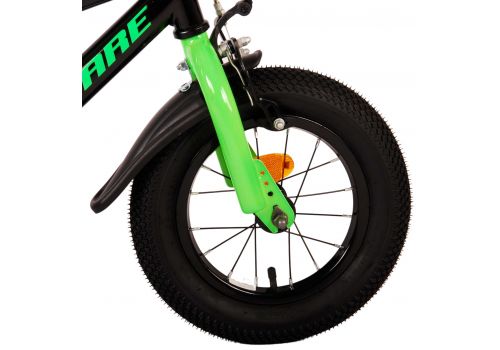 Veiligheid staat voorop! Daarom heeft deze gave fiets een handrem en terugtraprem, een gesloten kettingkast en afneembare zijwieltjes. Daarnaast heeft de fiets reflectoren in de wielen, voor- en achterop de fiets en een leuke bel. Ook aan het comfort is gedacht. De mooie zwarte Volare fiets met groene accenten heeft een zacht zadel, een tijdloos design, en een uniek frame dat wel tegen een stootje kan. Om zo lang mogelijk van de fiets te kunnen genieten zijn het zadel en stuur in hoogte verstelbaar. Wordt geleverd inclusief al het montagemateriaal dat nodig is om de fiets in elkaar te zetten!