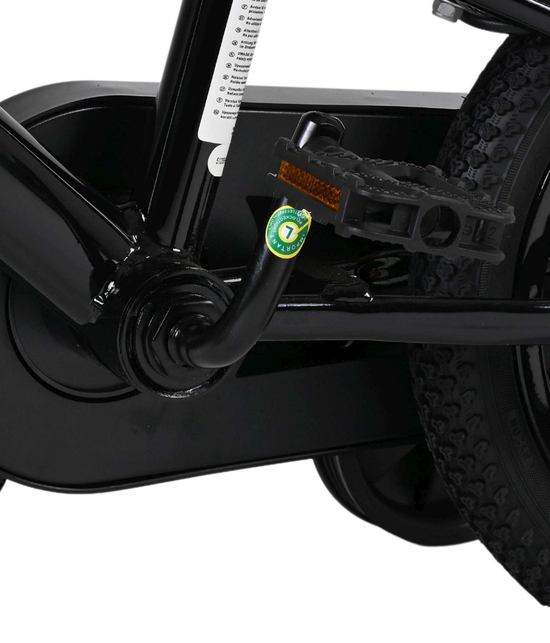 Veiligheid staat voorop! Daarom heeft deze gave fiets een handrem en terugtraprem, een gesloten kettingkast en afneembare zijwieltjes. Daarnaast heeft de fiets reflectoren in de wielen, voor- en achterop de fiets en een leuke bel. Ook aan het comfort is gedacht. De mooie zwarte Volare fiets met groene accenten heeft een zacht zadel, een tijdloos design, en een uniek frame dat wel tegen een stootje kan. Om zo lang mogelijk van de fiets te kunnen genieten zijn het zadel en stuur in hoogte verstelbaar. Wordt geleverd inclusief al het montagemateriaal dat nodig is om de fiets in elkaar te zetten!