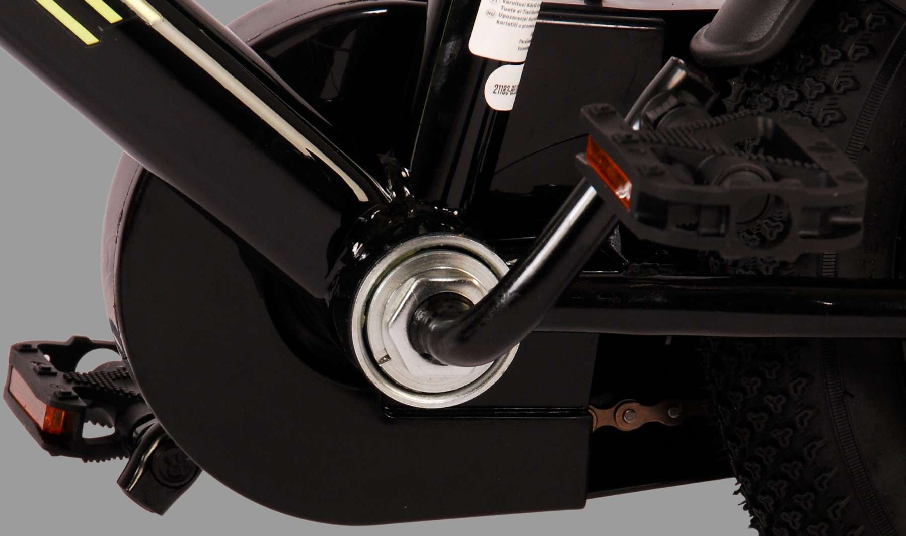 Veiligheid staat voorop! Daarom heeft deze gave fiets geen terugtraprem maar twee handremmen, een gesloten kettingkast en afneembare zijwieltjes. Daarnaast heeft de fiets reflectoren in de wielen, voor- en achterop de fiets en een leuke bel. Ook aan het comfort is gedacht. De mooie zwarte Volare fiets met groene accenten heeft een zacht zadel, een tijdloos design, en een uniek frame dat wel tegen een stootje kan. Om zo lang mogelijk van de fiets te kunnen genieten zijn het zadel en stuur in hoogte verstelbaar. Wordt geleverd inclusief al het montagemateriaal dat nodig is om de fiets in elkaar te zetten!