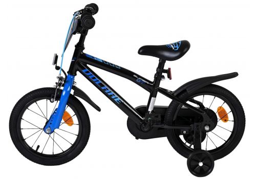 Veiligheid staat voorop! Daarom heeft deze gave fiets een handrem en terugtraprem, een gesloten kettingkast en afneembare zijwieltjes. Daarnaast heeft de fiets reflectoren in de wielen, voor- en achterop de fiets en een leuke bel. Ook aan het comfort is gedacht. De mooie zwarte Volare fiets met blauwe accenten heeft een zacht zadel, een tijdloos design, en een uniek frame dat wel tegen een stootje kan. Om zo lang mogelijk van de fiets te kunnen genieten zijn het zadel en stuur in hoogte verstelbaar. Wordt geleverd inclusief al het montagemateriaal dat nodig is om de fiets in elkaar te zetten!