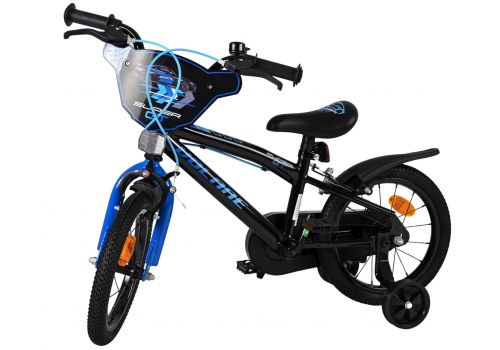 Veiligheid staat voorop! Daarom heeft deze gave fiets geen terugtraprem maar twee handremmen, een gesloten kettingkast en afneembare zijwieltjes. Daarnaast heeft de fiets reflectoren in de wielen, voor- en achterop de fiets en een leuke bel. Ook aan het comfort is gedacht. De mooie zwarte Volare fiets met blauwe accenten heeft een zacht zadel, een tijdloos design, en een uniek frame dat wel tegen een stootje kan. Om zo lang mogelijk van de fiets te kunnen genieten zijn het zadel en stuur in hoogte verstelbaar. Wordt geleverd inclusief al het montagemateriaal dat nodig is om de fiets in elkaar te zetten!