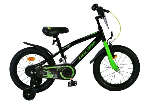 Veiligheid staat voorop! Daarom heeft deze gave fiets een handrem en terugtraprem, een gesloten kettingkast en afneembare zijwieltjes. Daarnaast heeft de fiets reflectoren in de wielen, voor- en achterop de fiets en een leuke bel. Ook aan het comfort is gedacht. De mooie zwarte Volare fiets met groene accenten heeft een zacht zadel, een tijdloos design, en een uniek frame dat wel tegen een stootje kan. Om zo lang mogelijk van de fiets te kunnen genieten zijn het zadel en stuur in hoogte verstelbaar. Wordt geleverd inclusief al het montagemateriaal dat nodig is om de fiets in elkaar te zetten!