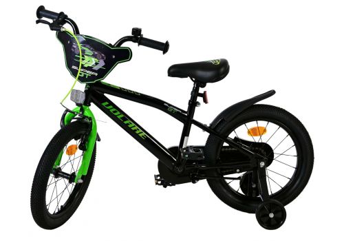 Veiligheid staat voorop! Daarom heeft deze gave fiets een handrem en terugtraprem, een gesloten kettingkast en afneembare zijwieltjes. Daarnaast heeft de fiets reflectoren in de wielen, voor- en achterop de fiets en een leuke bel. Ook aan het comfort is gedacht. De mooie zwarte Volare fiets met groene accenten heeft een zacht zadel, een tijdloos design, en een uniek frame dat wel tegen een stootje kan. Om zo lang mogelijk van de fiets te kunnen genieten zijn het zadel en stuur in hoogte verstelbaar. Wordt geleverd inclusief al het montagemateriaal dat nodig is om de fiets in elkaar te zetten!