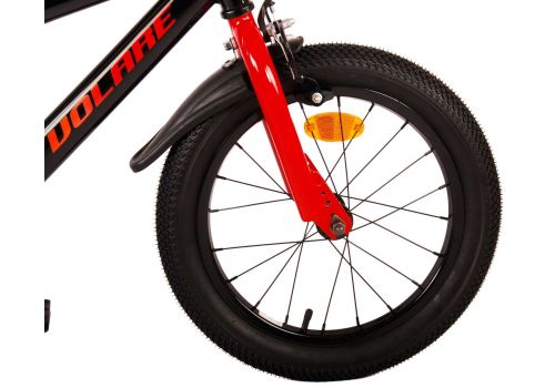 Veiligheid staat voorop! Daarom heeft deze gave fiets een handrem en terugtraprem, een gesloten kettingkast en afneembare zijwieltjes. Daarnaast heeft de fiets reflectoren in de wielen, voor- en achterop de fiets en een leuke bel. Ook aan het comfort is gedacht. De mooie zwarte Volare fiets met rode accenten heeft een zacht zadel, een tijdloos design, en een uniek frame dat wel tegen een stootje kan. Om zo lang mogelijk van de fiets te kunnen genieten zijn het zadel en stuur in hoogte verstelbaar. Wordt geleverd inclusief al het montagemateriaal dat nodig is om de fiets in elkaar te zetten!