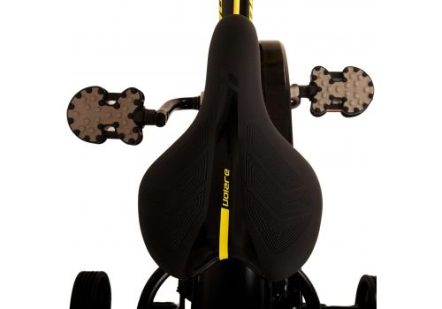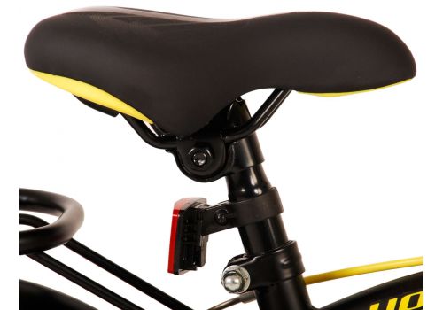 Veiligheid staat voorop! Daarom heeft deze gave fiets een handrem en terugtraprem, een gesloten kettingkast en afneembare zijwieltjes. Daarnaast heeft de fiets een leuke bel. Ook aan het comfort is gedacht. De mooie zwarte Volare fiets met gele accenten heeft een luxe zacht zadel, een handige achterdrager, en extra lange spatborden om al het vuil tegen te houden. Om zo lang mogelijk van de fiets te kunnen genieten zijn het zadel en stuur in hoogte verstelbaar. Wordt geleverd inclusief al het montagemateriaal dat nodig is om de fiets in elkaar te zetten!