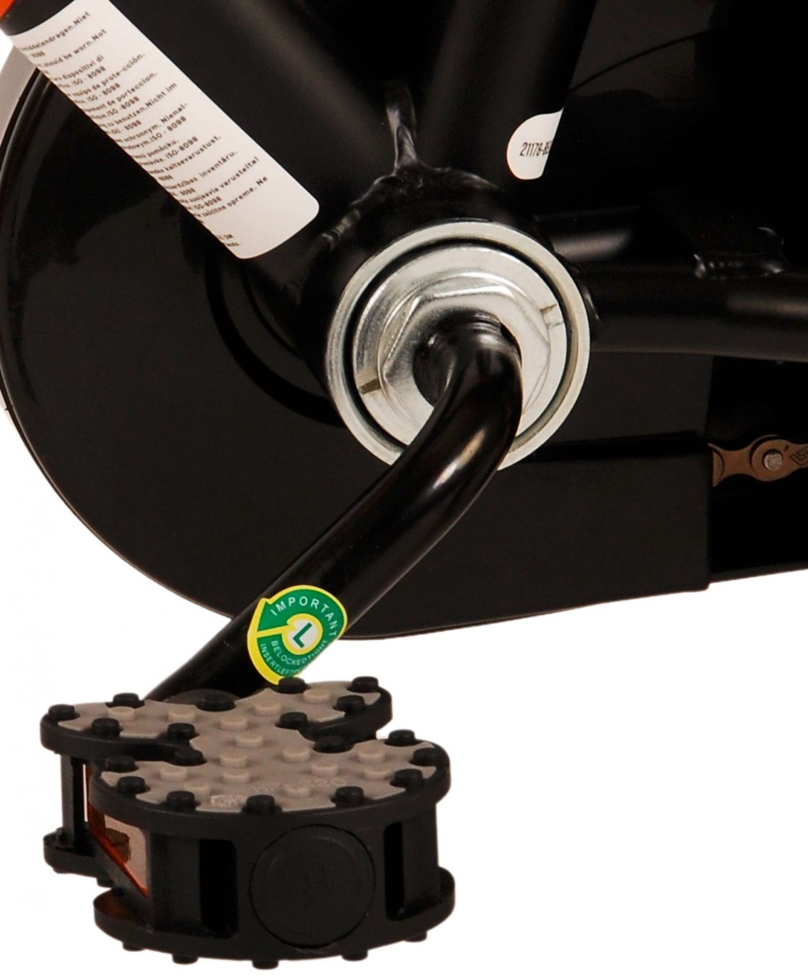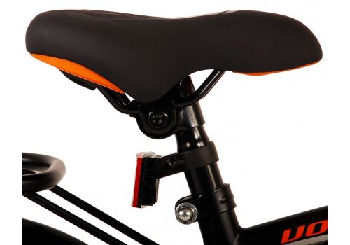 Veiligheid staat voorop! Daarom heeft deze gave fiets een handrem en terugtraprem, een gesloten kettingkast en afneembare zijwieltjes. Daarnaast heeft de fiets een leuke bel. Ook aan het comfort is gedacht. De mooie zwarte Volare fiets met oranje accenten heeft een luxe zacht zadel, een handige achterdrager, en extra lange spatborden om al het vuil tegen te houden. Om zo lang mogelijk van de fiets te kunnen genieten zijn het zadel en stuur in hoogte verstelbaar. Wordt geleverd inclusief al het montagemateriaal dat nodig is om de fiets in elkaar te zetten!