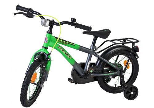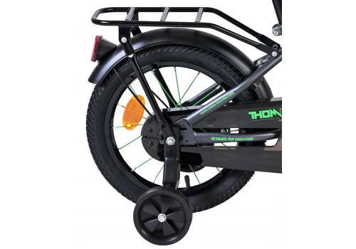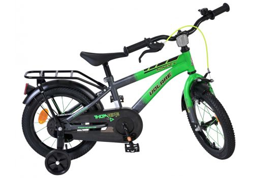 De Volare Thombike 14 inch in groen met grijze accenten is een stoere kinderfiets met een sportieve uitstraling, perfect om veilig en met vertrouwen te leren fietsen. Dankzij de stevige afwerking en het frisse design is dit een echte favoriet voor jonge rijders.