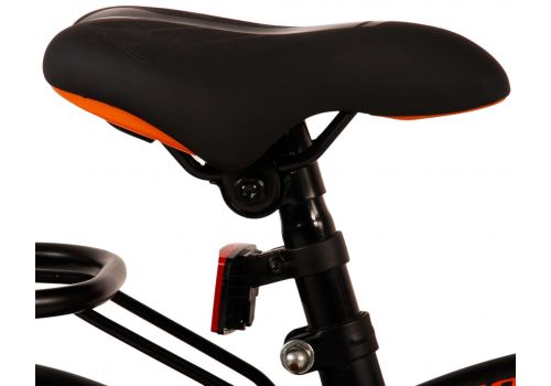 Veiligheid staat voorop! Daarom heeft deze gave fiets een handrem en terugtraprem, een gesloten kettingkast en afneembare zijwieltjes. Daarnaast heeft de fiets een leuke bel. Ook aan het comfort is gedacht. De mooie zwarte Volare fiets met oranje accenten heeft een luxe zacht zadel, een handige achterdrager, en extra lange spatborden om al het vuil tegen te houden. Om zo lang mogelijk van de fiets te kunnen genieten zijn het zadel en stuur in hoogte verstelbaar. Wordt geleverd inclusief al het montagemateriaal dat nodig is om de fiets in elkaar te zetten!