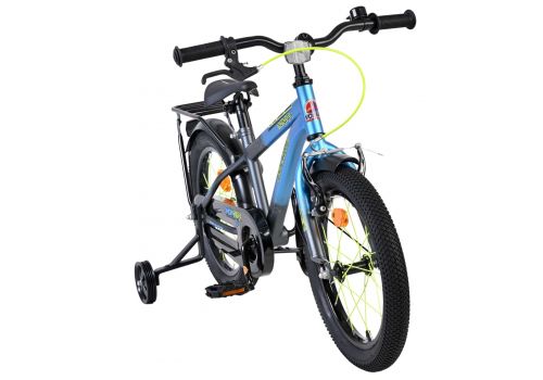 De Volare Thombike 16 inch kinderfiets in blauw met grijze details is perfect voor jonge fietsers die houden van een stoere en moderne uitstraling. Deze degelijke kinderfiets is voorzien van een dichte kettingkast, waardoor de bewegende onderdelen veilig zijn afgeschermd en de fiets minder onderhoud vraagt. Met de afneembare zijwielen kan ieder kind stap voor stap leren fietsen en later moeiteloos overstappen naar zelfstandig fietsen.
