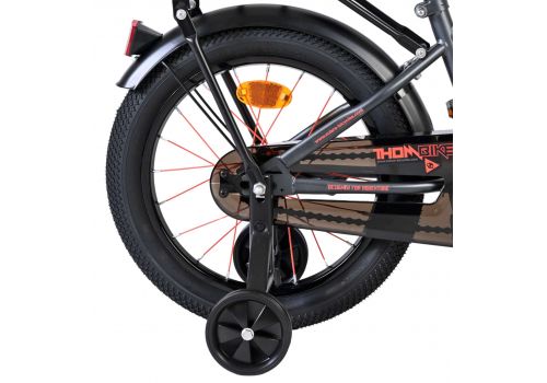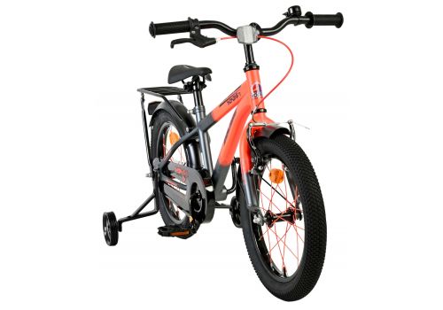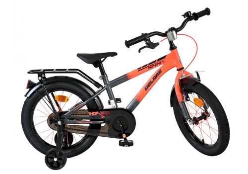De Volare Thombike 16 inch kinderfiets in oranje met grijze details is perfect voor jonge fietsers die houden van een stoere en moderne uitstraling. Deze degelijke kinderfiets is voorzien van een dichte kettingkast, waardoor de bewegende onderdelen veilig zijn afgeschermd en de fiets minder onderhoud vraagt. Met de afneembare zijwielen kan ieder kind stap voor stap leren fietsen en later moeiteloos overstappen naar zelfstandig fietsen.