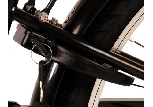Veiligheid staat voorop! Daarom heeft deze gave fiets een handrem en terugtraprem en verlichting op batterij voor en achter. Daarnaast heeft de fiets een leuke bel en reflectoren in de wielen. Ook aan het comfort is gedacht. De mooie zwarte Volare fiets met blauwe accenten heeft een luxe zacht zadel en extra zachte handvaten, een handige achterdrager, en een stevig frame dat wel tegen een stootje kan. Verder heeft de fiets een standaard zodat hij netjes blijft staan en een sterk slot. Om zo lang mogelijk van de fiets te kunnen genieten heeft deze een extra lange zadelpen waardoor de fiets nóg langer met het kind meegroeit en ook het stuur is in hoogte verstelbaar.
