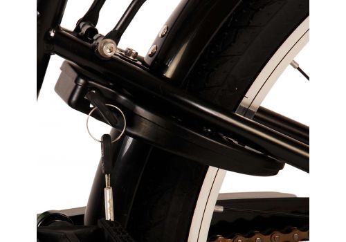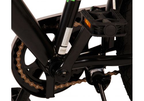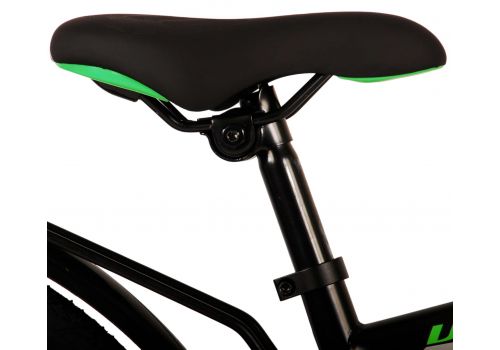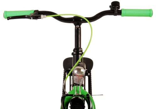 Veiligheid staat voorop! Daarom heeft deze gave fiets een handrem en terugtraprem en verlichting op batterij voor en achter. Daarnaast heeft de fiets een leuke bel en reflectoren in de wielen. Ook aan het comfort is gedacht. De mooie zwarte Volare fiets met groene accenten heeft een luxe zacht zadel en extra zachte handvaten, een handige achterdrager, en een stevig frame dat wel tegen een stootje kan. Verder heeft de fiets een standaard zodat hij netjes blijft staan en een sterk slot. Om zo lang mogelijk van de fiets te kunnen genieten heeft deze een extra lange zadelpen waardoor de fiets nóg langer met het kind meegroeit en ook het stuur is in hoogte verstelbaar.
