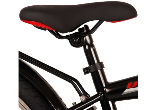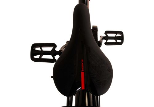 Veiligheid staat voorop! Daarom heeft deze gave fiets een handrem en terugtraprem en verlichting op batterij voor en achter. Daarnaast heeft de fiets een leuke bel en reflectoren in de wielen. Ook aan het comfort is gedacht. De mooie zwarte Volare fiets met rode accenten heeft een luxe zacht zadel en extra zachte handvaten, een handige achterdrager, en een stevig frame dat wel tegen een stootje kan. Verder heeft de fiets een standaard zodat hij netjes blijft staan en een sterk slot. Om zo lang mogelijk van de fiets te kunnen genieten heeft deze een extra lange zadelpen waardoor de fiets nóg langer met het kind meegroeit en ook het stuur is in hoogte verstelbaar.