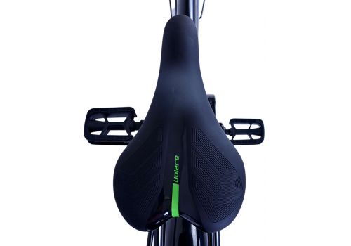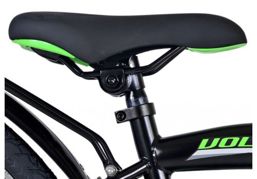 Veiligheid staat voorop! Daarom heeft deze gave fiets een handrem en terugtraprem en verlichting op batterij voor en achter. Daarnaast heeft de fiets een leuke bel en reflectoren in de wielen. Ook aan het comfort is gedacht. De mooie zwarte Volare fiets met groene accenten heeft een luxe zacht zadel en extra zachte handvaten, een handige achterdrager, en een stevig frame dat wel tegen een stootje kan. Verder heeft de fiets een standaard zodat hij netjes blijft staan en een sterk slot. Om zo lang mogelijk van de fiets te kunnen genieten heeft deze een extra lange zadelpen waardoor de fiets nóg langer met het kind meegroeit en ook het stuur is in hoogte verstelbaar.