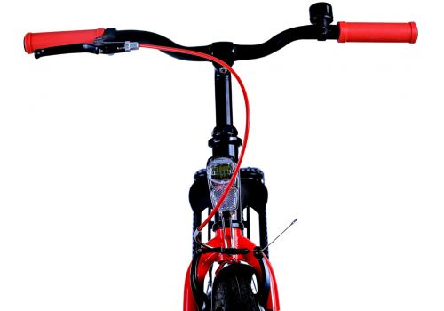 Veiligheid staat voorop! Daarom heeft deze gave fiets een handrem en terugtraprem en verlichting op batterij voor en achter. Daarnaast heeft de fiets een leuke bel en reflectoren in de wielen. Ook aan het comfort is gedacht. De mooie zwarte Volare fiets met rode accenten heeft een luxe zacht zadel en extra zachte handvaten, een handige achterdrager, en een stevig frame dat wel tegen een stootje kan. Verder heeft de fiets een standaard zodat hij netjes blijft staan en een sterk slot. Om zo lang mogelijk van de fiets te kunnen genieten heeft deze een extra lange zadelpen waardoor de fiets nóg langer met het kind meegroeit en ook het stuur is in hoogte verstelbaar.