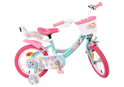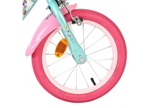 De Volare Unicorn 14 inch is een kleurrijke en speelse meisjesfiets voor kinderen die dol zijn op Unicorns en avontuur. Deze prachtige groene fiets is rijk versierd met vrolijke Unicorn- en regenboogdetails, waardoor iedere rit een feestje wordt.
