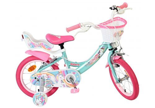 De Volare Unicorn 14 inch is een kleurrijke en speelse meisjesfiets voor kinderen die dol zijn op Unicorns en avontuur. Deze prachtige groene fiets is versierd met vrolijke Unicorn- en regenboogdetails, waardoor elke rit extra magisch wordt.