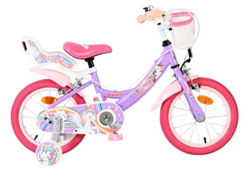 Volare Unicorn Kinderfiets - Meisjes - 14 inch - Paars - Twee Handremmen