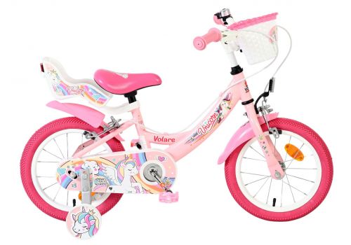 De Volare Unicorn 14 inch is een kleurrijke en speelse meisjesfiets voor kinderen die dol zijn op Unicorns en avontuur. Deze prachtige roze fiets is versierd met vrolijke Unicorn- en regenboogdetails, waardoor elke rit extra magisch wordt.