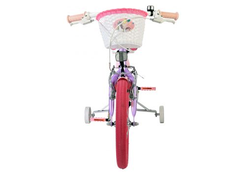 Met de afneembare zijwielen kunnen kinderen veilig en zelfverzekerd leren fietsen. De roze banden geven de fiets een opvallende en stijlvolle look. Voorop bevindt zich een handig mandje en achterop een poppenzitje, perfect om speelgoed of een favoriete pop mee te nemen. Voor de zichtbaarheid is de fiets voorzien van reflectoren voor, achter en in de wielen, en natuurlijk maakt de bel het geheel compleet.