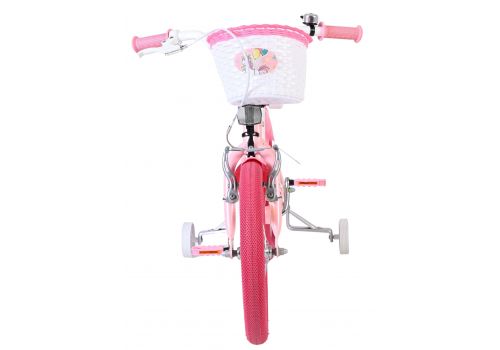 Met de afneembare zijwielen leren kinderen stap voor stap zelfstandig fietsen. De roze banden geven de fiets een vrolijke en stijlvolle look. Voorop zit een handig mandje en achterop een poppenzitje, ideaal om favoriete speelgoed mee te nemen. Bovendien is de fiets voorzien van reflectoren voor, achter en in de wielen, zodat je kind goed zichtbaar is. De bel maakt het geheel helemaal af.