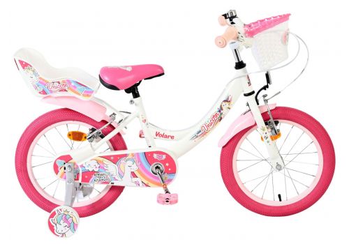 Volare Unicorn Kinderfiets - Meisjes - 16 inch - Wit - Twee Handremmen